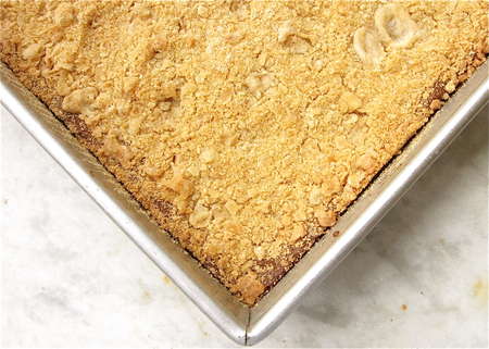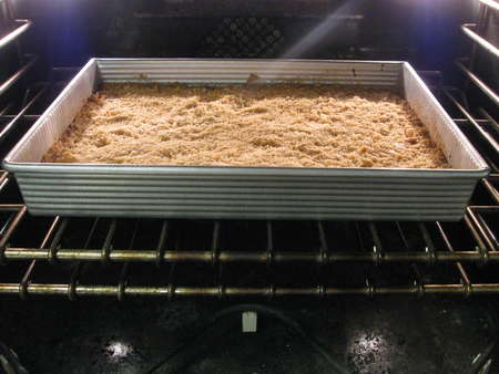 Remove the squares from the oven, and sprinkle with the topping. Return to the oven. Bake for an additional 25 to 30 minutes, till the topping is a lovely golden brown.