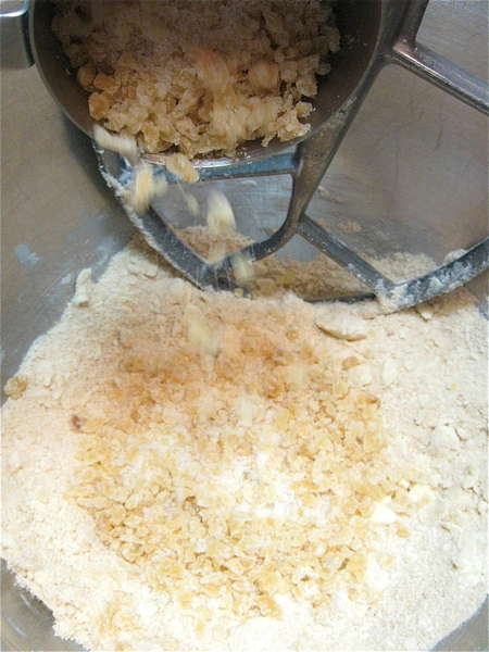 Work in the butter till the mixture is unevenly crumbly; some chunks of butter can remain. Stir in 1/2 cup (92g) ginger mini chips or diced crystallized ginger.