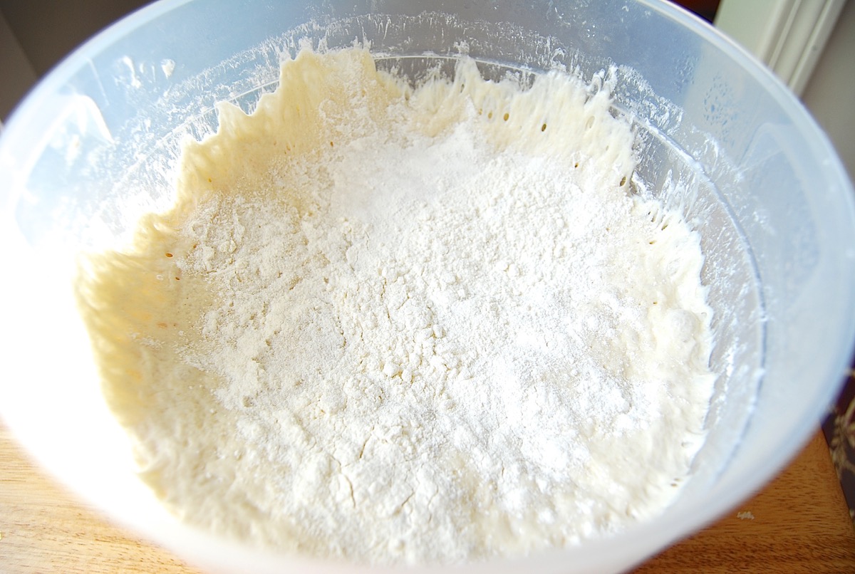 Next, you're going to let the dough rise. If you've made the dough in a plastic bucket, you're all set – just let it stay there, covering the bucket with a lid or plastic wrap; a shower cap actually works well here.