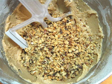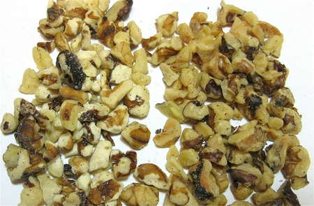 Regular walnuts on the left; browned on the right. They should be golden; don't let them darken too much, or they'll taste bitter.