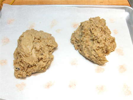 Divide the dough in half on a lightly greased or parchment-lined baking sheet.