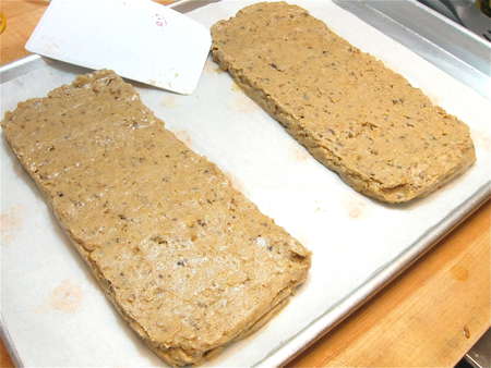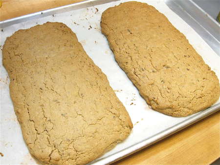 Note the difference in length/thickness between the 1”-thick biscotti and the 1/2”-thick biscotti. I prefer a longer, thinner cookie. And you'll get twice as many of the 1/2” biscotti, of course.