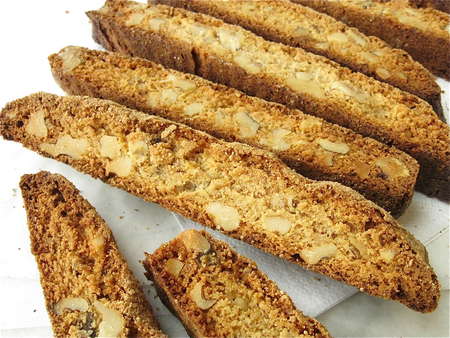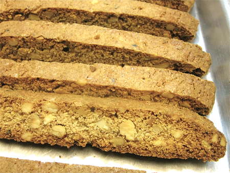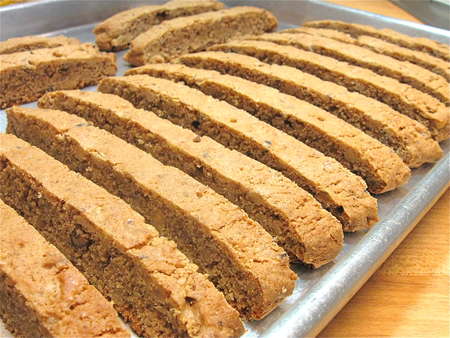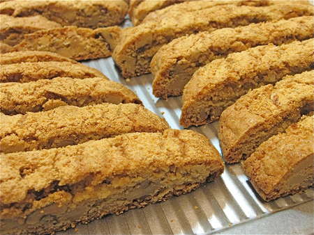 Nicely browned, ready to enjoy. And remember - one of the best things about biscotti is that you can throw them in a plastic bag, leave ’em on the counter, and they're just as crunchy and delicious in 3 weeks as they were the day you baked them.