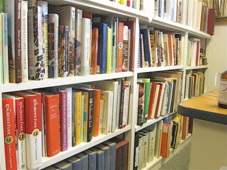 For those of you who still love your cookbooks, here's part of my “wall of books” in our Web team room. As much time as I spend online, I can't bear to give up my cookbooks... ANY of them!