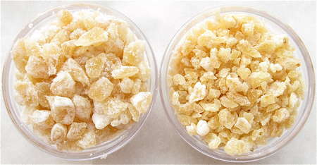 That's medium diced crystallized ginger on the left, and mini diced crystallized ginger on the right. Either is appropriate for this recipe, as would be soft diced ginger, a lovely cross between crystallized ginger and ginger in syrup.