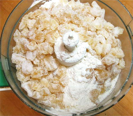 Place 1 cup (120g) of King Arthur Unbleached All-Purpose Flour in a food processor with 2/3 cup (123g) crystallized ginger.