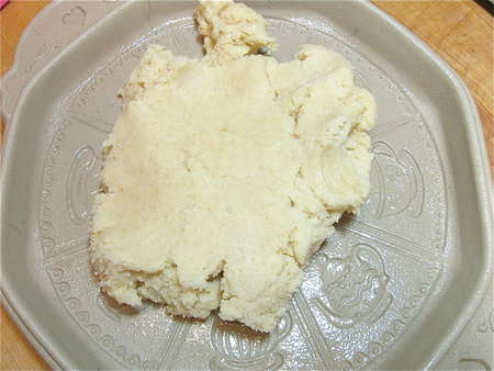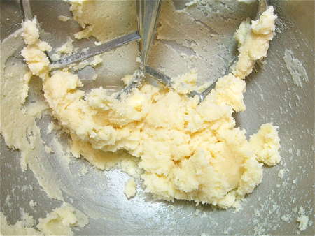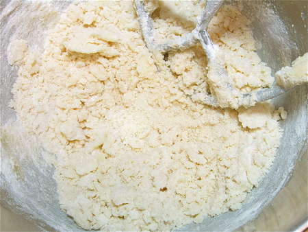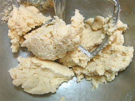 Beat to combine. The mixture will seem stubbornly crumbly at first; just keep beating...
