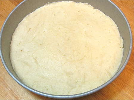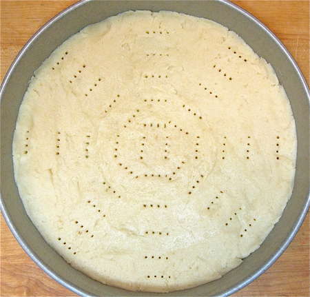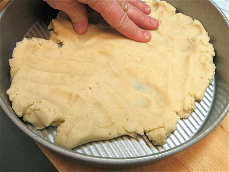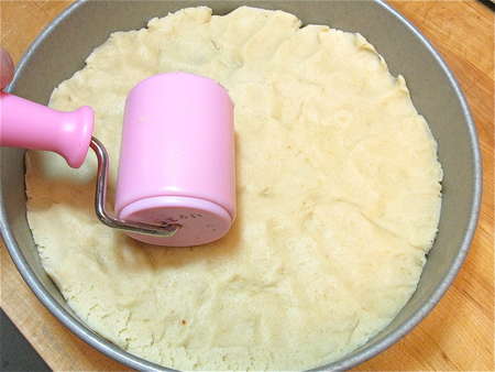 Once you've pressed the dough all the way to the edges of the pan, you can smooth it with a pastry roller. I find this silicone mini roller is very handy for small jobs like this.