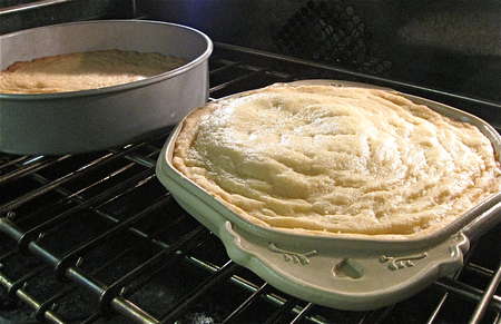 WHOOOOPS! “Someone” forgot to prick the dough in the stoneware pan.