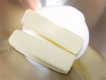 Combine 16 tablespoons (227g) unsalted butter, 1 teaspoon salt, 3/4 cup (149g) sugar, and 1 teaspoon vanilla extract (optional) in a mixing bowl.