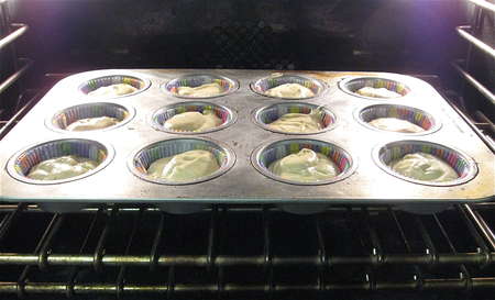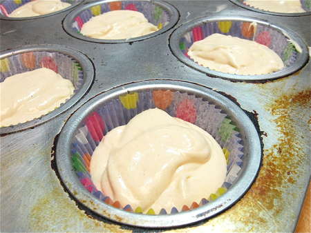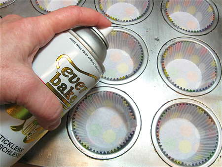 Lightly grease and flour a muffin pan. You can also line the muffin pan with papers, and spray the insides of the papers.