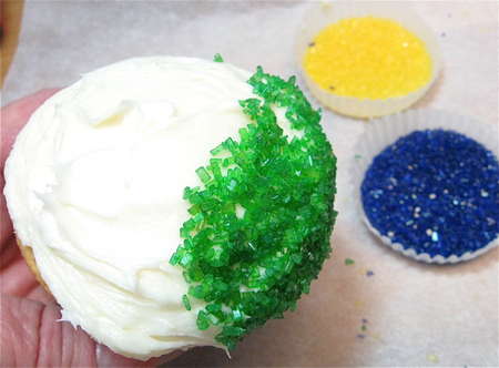 Here's a must-have: Mardi Gras' classic colors – yellow (gold), violet, and green – in sparkling topping sugars. These sugars will take your cupcakes from Main Street to Bourbon Street.