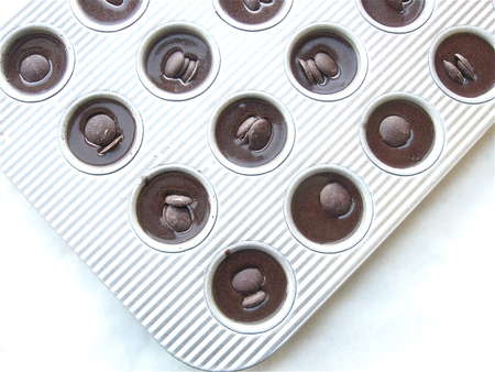 So I was thinking, how about just forgetting the unbaked batter thing, and simply adding solid chocolate to the center of an unbaked mini cake?
