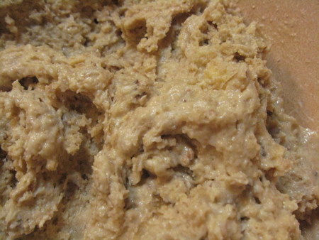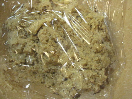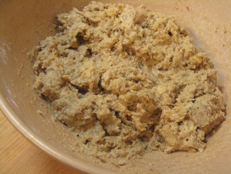 There, nice and cold. If you compare the two photos, you can see that the dough isn't nearly as wet after its rest.
