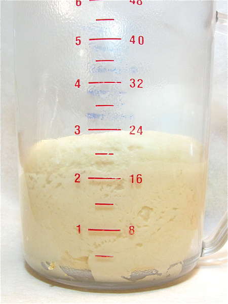 Place the dough in a lightly greased container — an 8-cup measure works well here — and allow the dough to rise till it's puffy, though not necessarily doubled in size.
