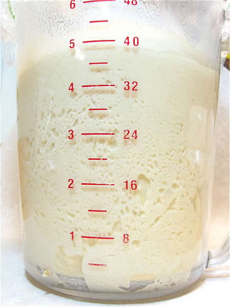 See what I mean about the 8-cup measure? It's neat to see the bubbles and air pockets created by the growing yeast.