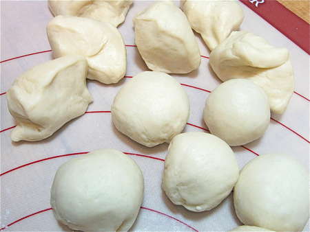 Divide the dough into 32 pieces, by dividing in half, then in halves again, etc.