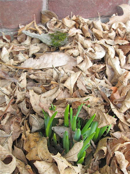Speaking of green - look what I found beside my south foundation on the last day of February. Hope springs eternal, as do daffodils...