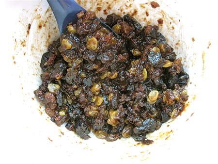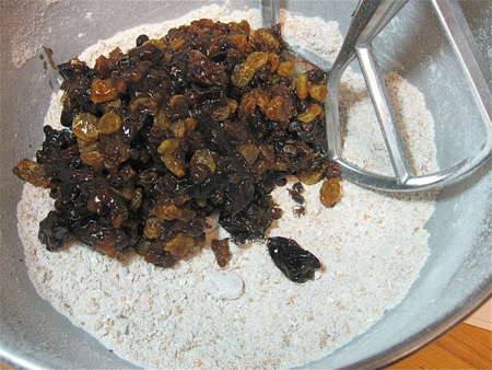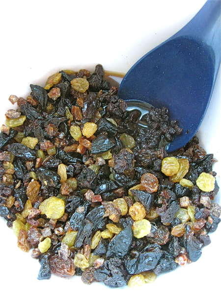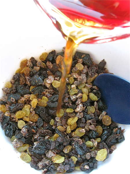 And of course, there's whiskey, if you're so inclined. Hey, you have to soften the fruits in SOMETHING, right? The original recipe calls for a thorough soak in hot brewed tea; but a few tablespoons of harder stuff is never amiss.