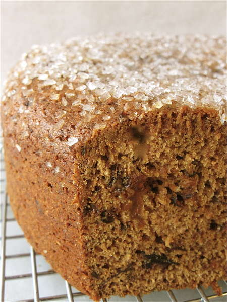 Sprinkle the top of the loaf heavily with coarse white sparkling sugar. For those of you uncomfortable with throwing all caution to the winds, I actually measured how much I used: 2 1/2 tablespoons (39g).
