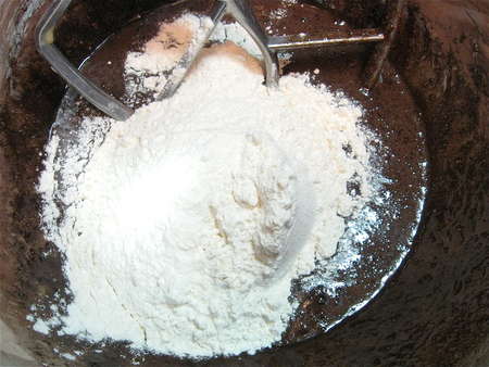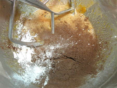 Add 1/4 cup (21g) Double-Dutch Dark Cocoa or Dutch-process cocoa, and 2 teaspoons baking powder.