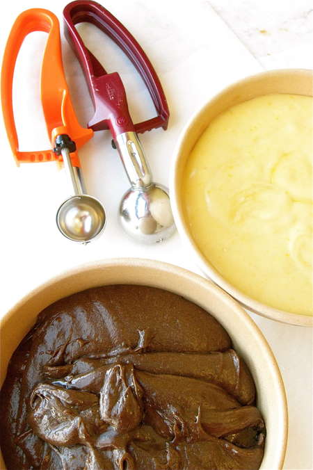 Hmmm... looks like the chocolate spreads more. So, I need to use more vanilla batter than chocolate.