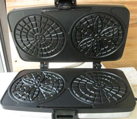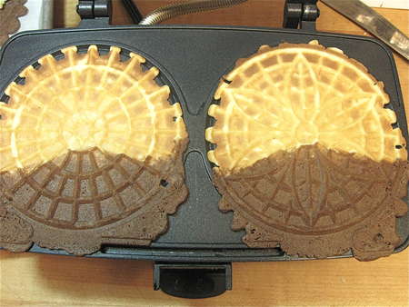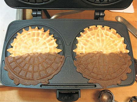 A few tweaks in placement, and pretty soon I was turning out nearly perfect half-and-half pizzelle.