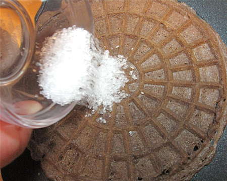 ...and sprinkle about 1 1/2 teaspoons sparkling white sugar on the pizzelle.