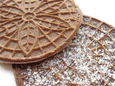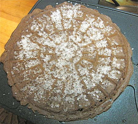 The simplest variation: Chocolate pizzelle, with coarse sugar and without.
