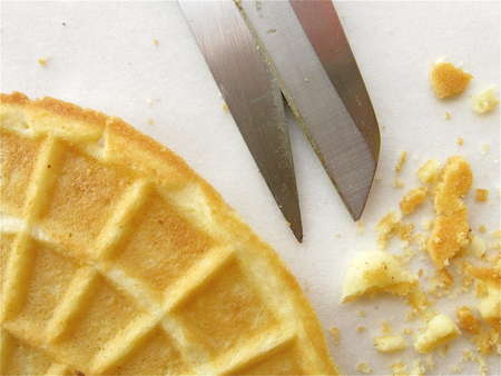 Speaking of perfect, ragged edges are inevitable. But not permanent. Simply use a pair of scissors to trim the pizzelle. Do it while they're warm, or wait till they're cool; doesn't matter.