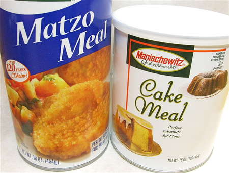 Two key Passover popover ingredients – matzo meal, and cake meal (which is also made from matzo).