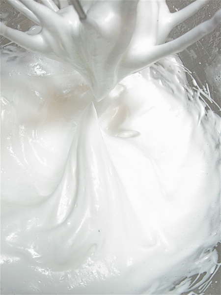 Add 1/2 cup (57g) confectioners' sugar, and beat at high speed till the mixture forms fairly stiff peaks. When you scoop some up in a spoon, it should hold its shape easily.