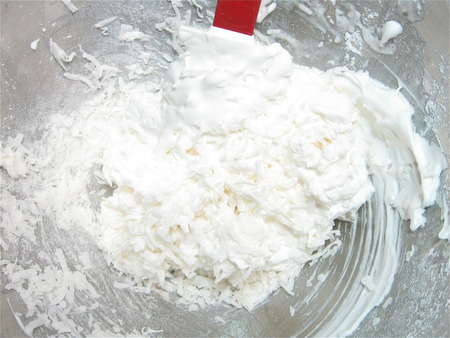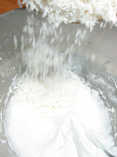 Mix 2 cups (170g) shredded or flaked sweetened coconut with 2 tablespoons (14g) King Arthur Unbleached All-Purpose Flour, and add to the egg whites.