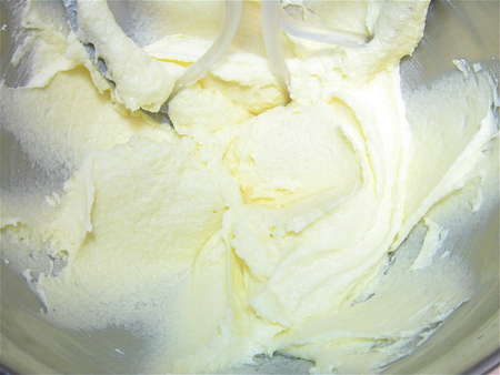Put the following in a mixing bowl, and start to beat, using your mixer's whisk attachment: