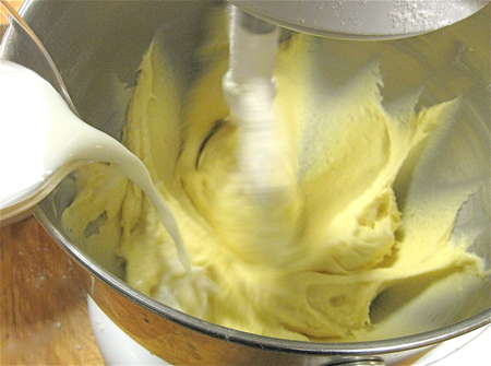 Stir in 2 teaspoons baking powder. Then add 3 cups (361g) King Arthur Unbleached All-Purpose Flour alternately with 1 cup (227g) milk.