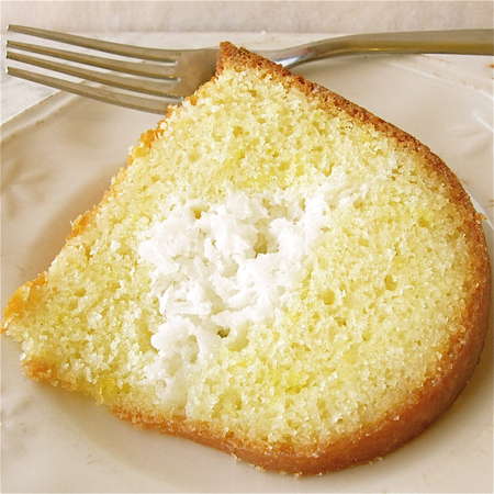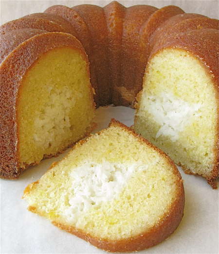 But Tunnel of Fudge Cake? Not this time. Tart lemon cake filled with sweet, gooey coconut is just the ticket for a bright, fresh spring day.