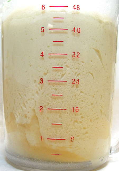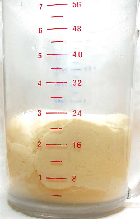 Place the dough in a lightly greased container — an 8-cup measure works well here — and allow the dough to rise for 60 to 90 minutes, until it's just about doubled in bulk.