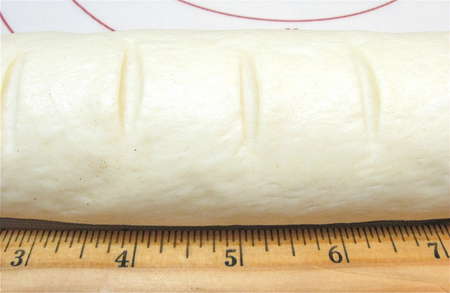 In order to make the neatest job of cutting the buns, use a sharp knife to mark the log at 1” intervals.