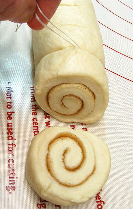 Here's a trick beloved by King Arthur bakers all over the company: using dental floss to cut the neatest possible cinnamon or sticky buns.