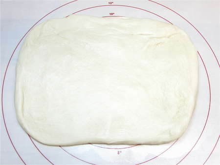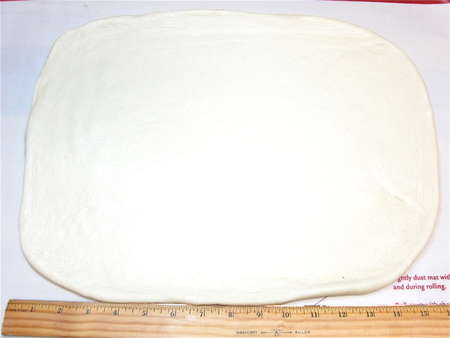 Roll the dough into a 16” long rectangle, about 12” wide. This soft dough rolls easily, so you shouldn't have much trouble with shrinking or “push back.”