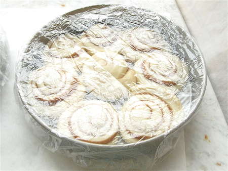 Just before serving, tent the buns lightly with foil, and rewarm in a preheated 350°F oven for 10 minutes (a bit longer, for frozen buns).