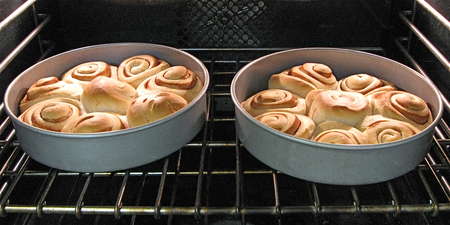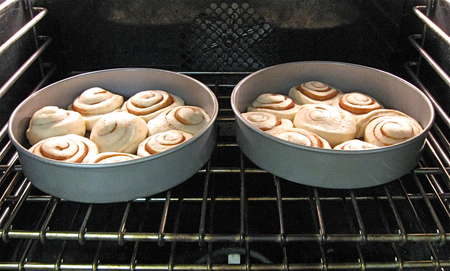 Cover the pans, and allow the buns to rise till they're crowded against one another and quite puffy, about 60 to 90 minutes. Towards the end of the rising time, preheat the oven to 350°F.