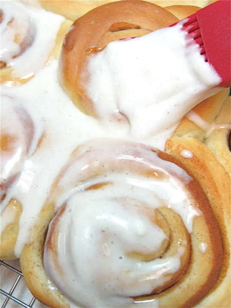 Spread with the glaze, and serve immediately.