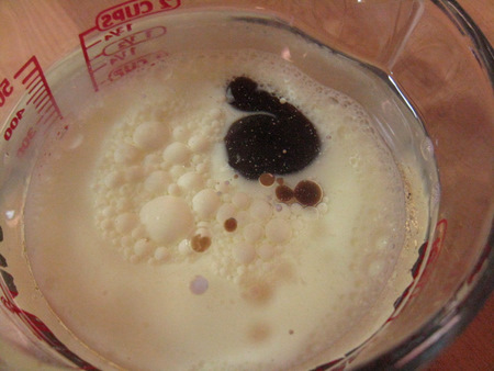 Combine the milk, oil and vanilla in a 2-cup liquid measure. If you're baking with school-aged kids, this is a great way to show them about different densities of liquids, as the milk and oil will separate into distinct layers, and the vanilla will suspend. Hey, baking is science!