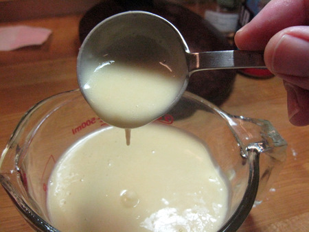 Pour 2 cups of the vanilla batter into the liquid measure you used before. The batter is on the thinner side, but this is important to the final outcome of the cake.