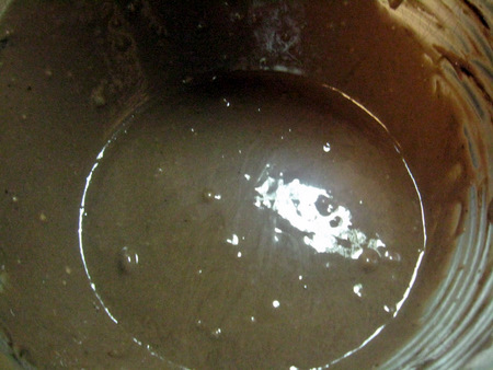 Blend in the cocoa until the batter is smooth and lump-free. This batter is just a tiny bit thicker than the vanilla batter, but still on the thinner side. You'll see why this is important soon.