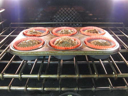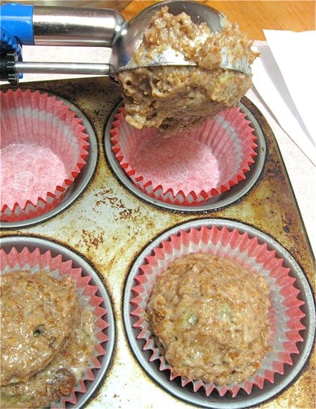 Preheat your oven to 375°F. Lightly grease a standard muffin pan, or line with paper cups, and grease the cups. Use as many wells as you like; since this recipe can live in the fridge for a couple of weeks, there's no need to bake 12 muffins all at once.