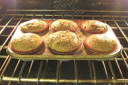 Bake the muffins for 20 to 25 minutes, till a cake tester inserted into the center of a muffin comes out clean.