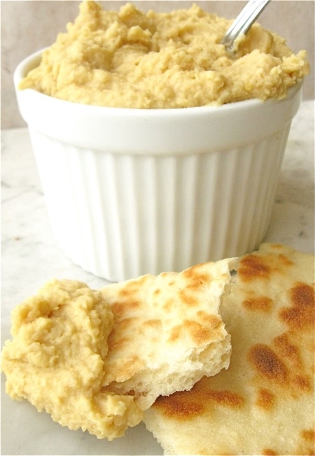 Scoop it into a bowl. Here I'm serving the hummus with fresh, warm, homemade tortillas.