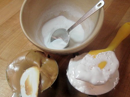 Here are some of the star players in this pie. Creamy peanut butter, sweet fluffy Marshmallow Fluff and Instant ClearJel blended with a touch of sugar.